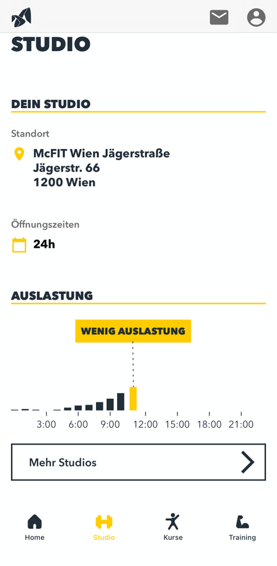 Die aktuelle Studioauslastung kannst du jederzeit in der McFIT App einsehen.