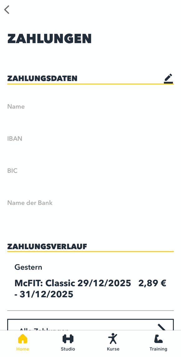 · Drücke auf das Stift-Symbol, um deine Daten zu bearbeiten.